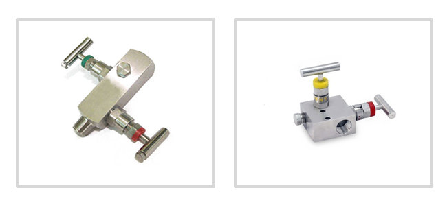 Pioneer 2 valve manifolds pipe to pipe (R), Pipe to Flange (T) valves are designed for connecting system impulse line & transmitters. These manifold consist of two valve configuration which allows for easy isolation, calibration, block and bleed for gauges, pressure switches and static pressure transmitting instruments. These manifolds are rugged in construction to withstand high pressures and temperatures. The manifolds are rated for pressures as high as 6000 PSI at 200oF or 4000 PSI at 500oF. with PTFE Packing. For a Higher Temperatures Grafoil Packing is used. These valve manifolds combine the functions of a tee, calibration valve, isolation valve and all tubing and fittings into a single compact unit thus reducing number of fittings and space required for installation.